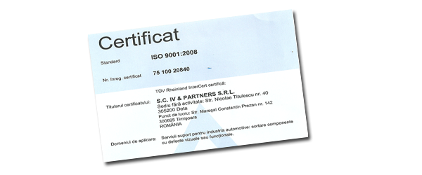 Scopul nostru este sa fim un prestator de servicii de inspectii vizuale si functionale in industria automotive, competitiv si orientat spre calitate ,care tinde sa-si imbunatateasca permanent performantele, printr-o colaborare stransa cu clientii . Calitatea 100% este modul in care lucram impreuna si ne respectam angajamentele.